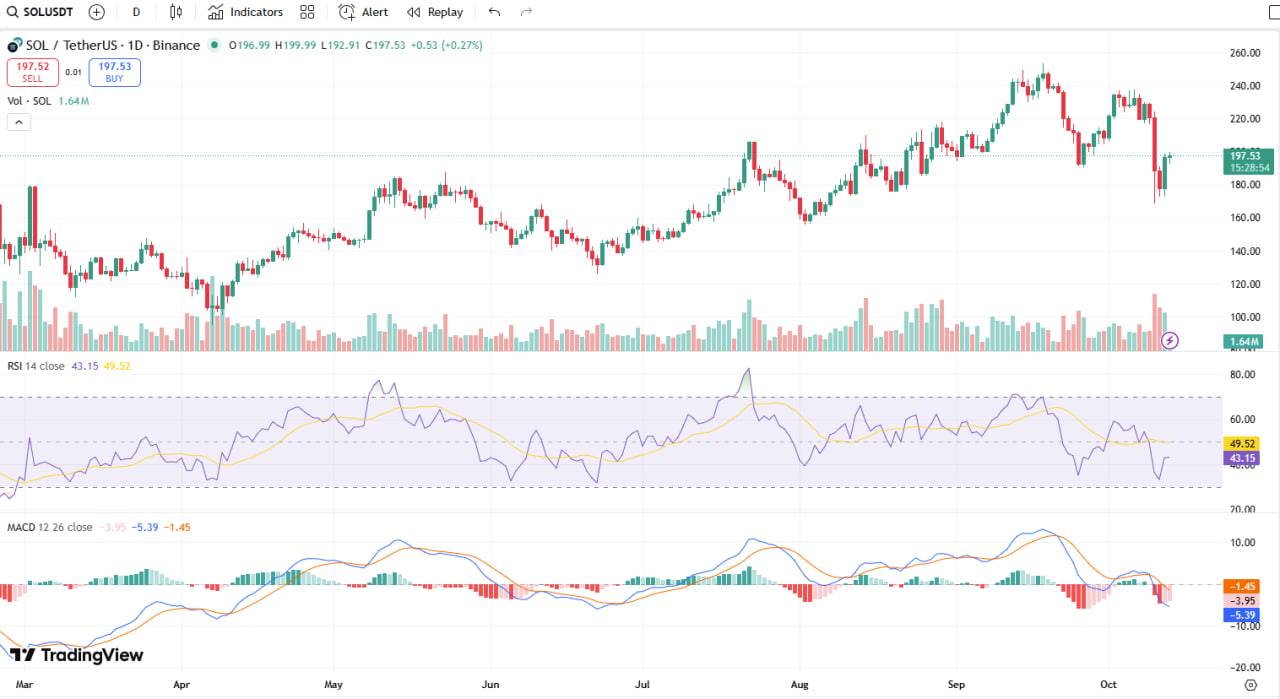 Solana Tests Key Support Near $196 After Breaking $200
