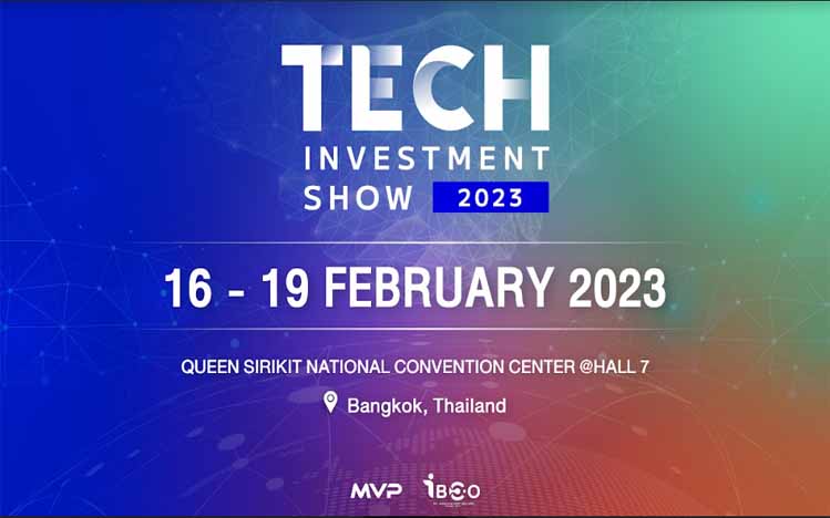 Tech Investment Show 2023, encouraging the growth of tech Industry. Tech investment show will be held in Thailand, Queen Sirikit National Convention Center I Hall 7 on February 16-19, 2023. where C-Level executives, professionals, project owners, founders and influencers in the tech industry share their view on the market globally.