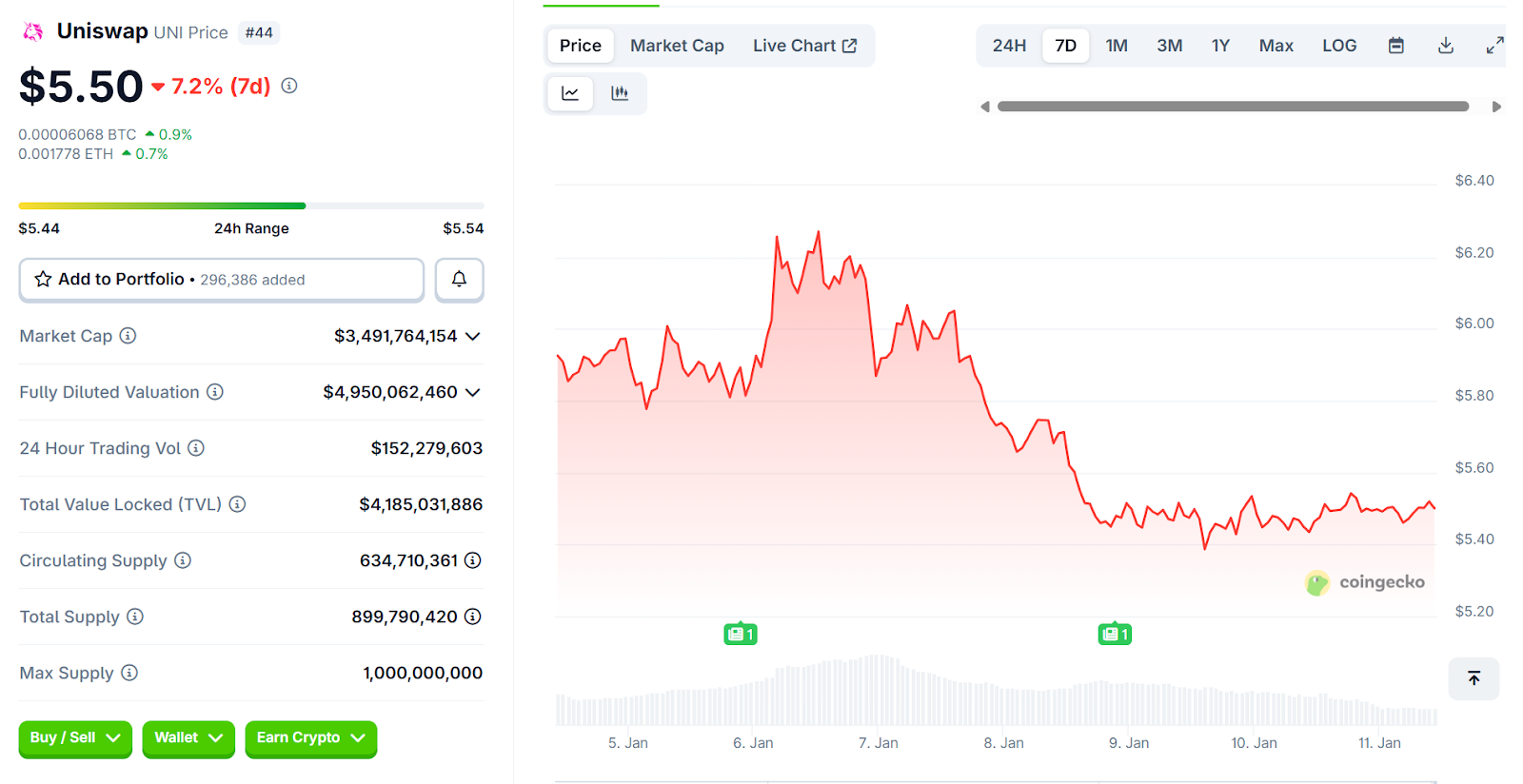 Uniswap stays a core DeFi protocol. The Uniswap price prediction talk in early 2026 reflects that maturity. UNI has been trading around the $5 to $6 range. Steady volumes and its role as a primary liquidity hub support it. Analysts see resistance forming near the upper end of this range. This suggests controlled movement rather than sharp breakouts in the short term.