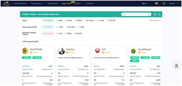 Users can use Copy trading in Bityard. This feature allows each user to copy his own favorite trader to help earn daily profits. As additional info, Copy Trading is also available via Mobile APP and PC.