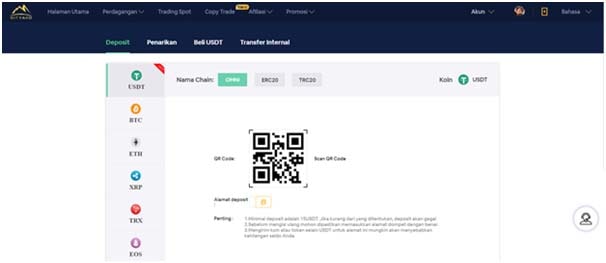 There are 9 main cryptocurrencies that can be used for deposits. Among them are the Chinese Yuan (CNY), Indonesian Rupiah (IDR), Vietnamese Dong (VND), and other fiat which are in process. To withdraw, with a nominal value of 15 USDT, we can make withdrawals or WD. Withdrawals can be made during operating hours from 08.00 AM to 08.00 PM (Indonesian time).