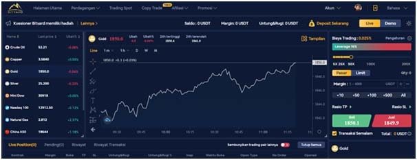 For derivatives, Bityard provides 11 tradable assets such as gold, silver and others.